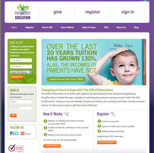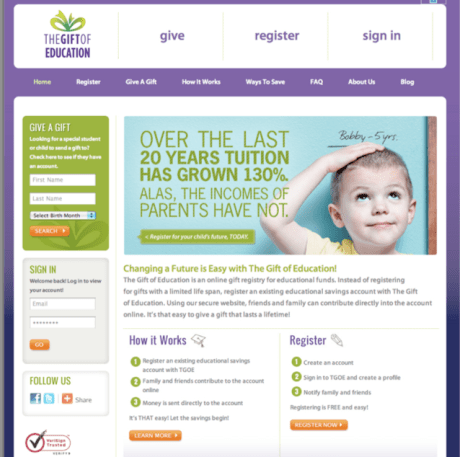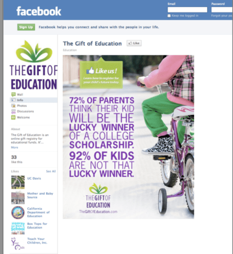 The best way to reach the target for an online gift registry for college savings? Online, of course. And with the facts.